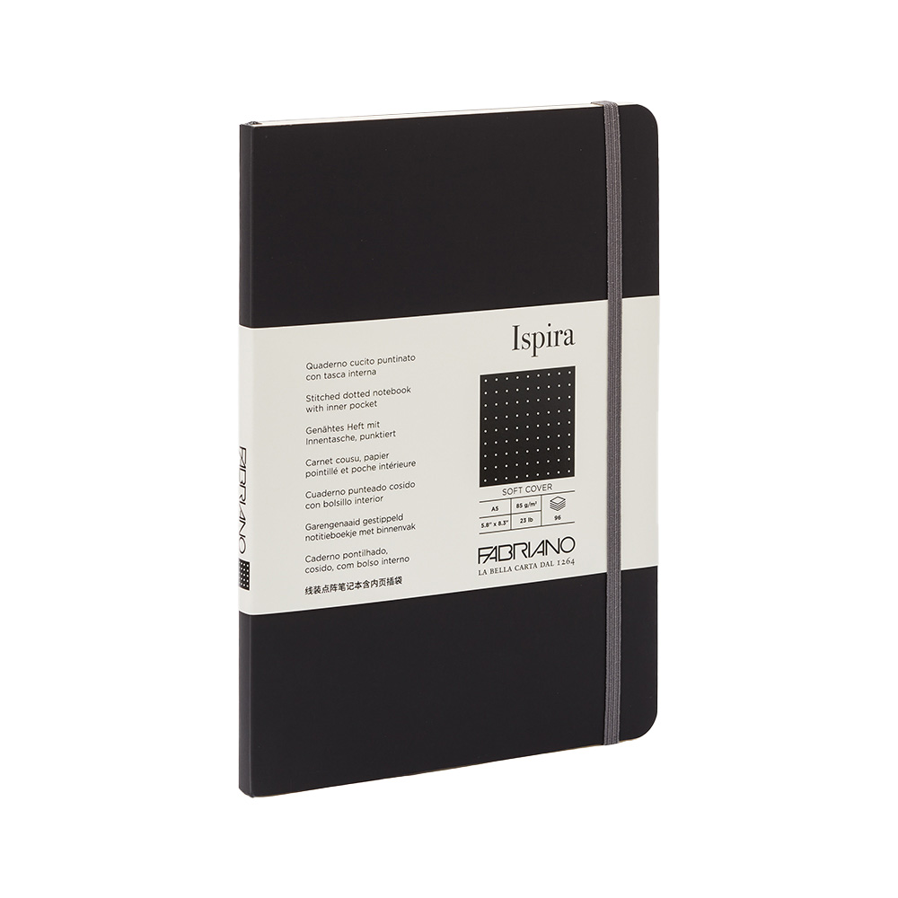 Fabriano Тетрадка Ispira, A5, на точки, шита, мека корица, 96 листа, черна