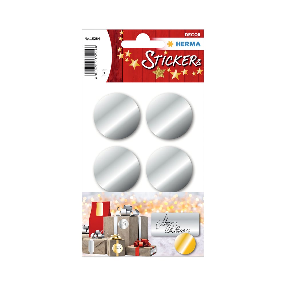Herma Самозалепващи се етикети, диаметър 32 mm, сребристи, 18 броя