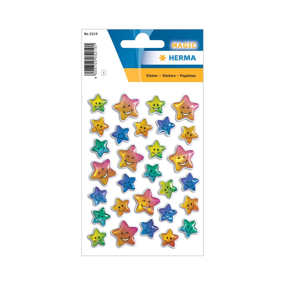 Herma Самозалепващи се етикети Звезди, обемни, цветни, 1 лист