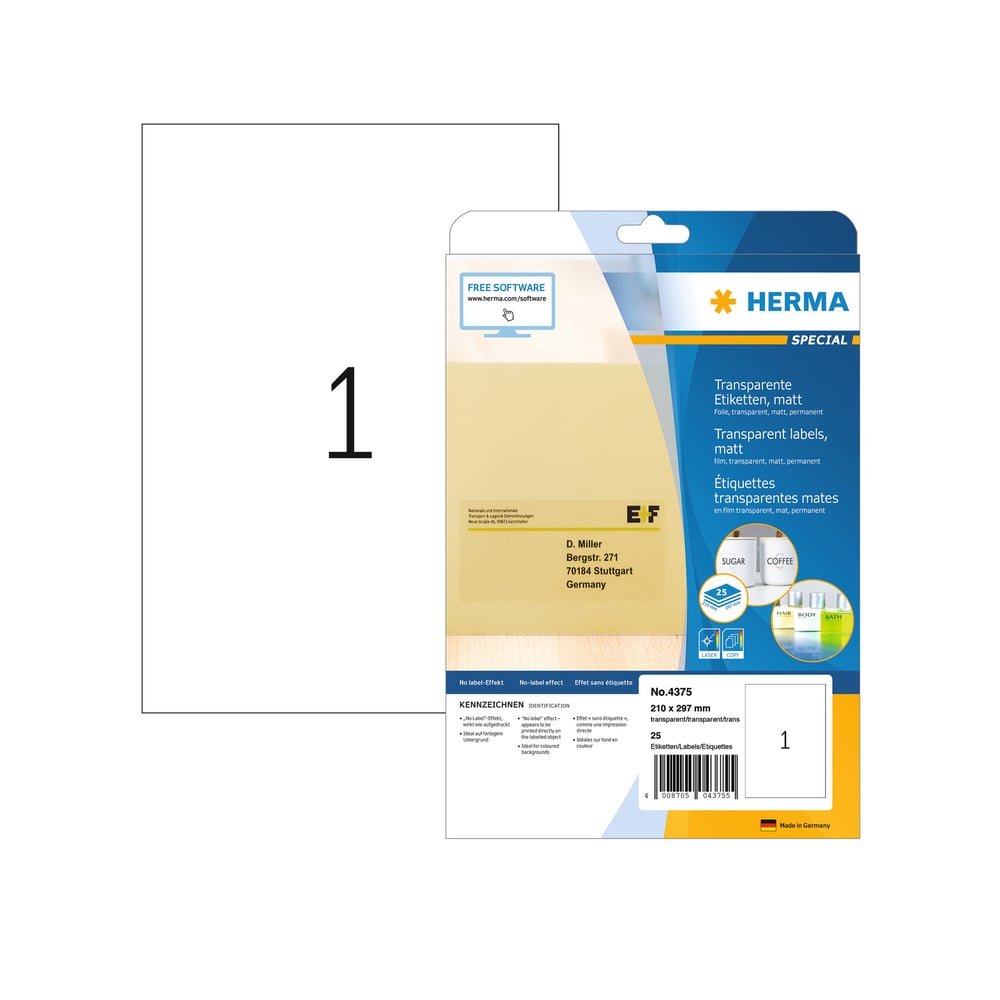 Herma Самозалепващи се етикети, A4, полиестерни, 210 х 297 mm, 25 листа