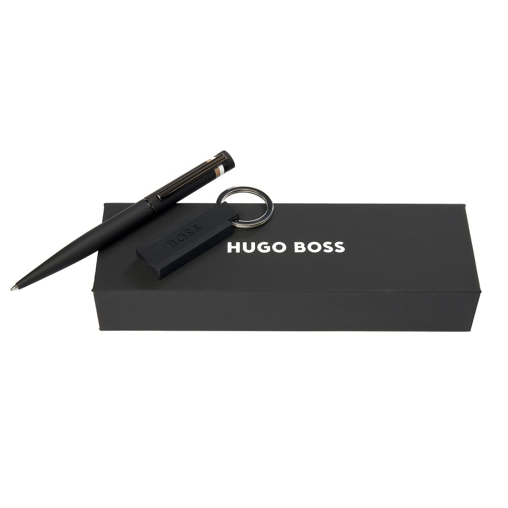 Hugo Boss Комплект ключодържател и химикалка Edge Iconic, черни