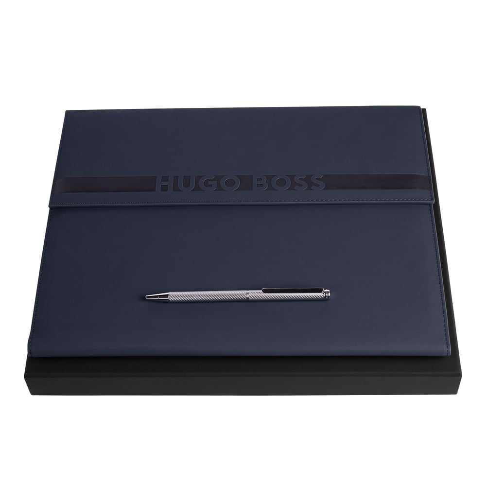 Hugo Boss Комплект папка Cloud, А4, синя и химикалка Chrome