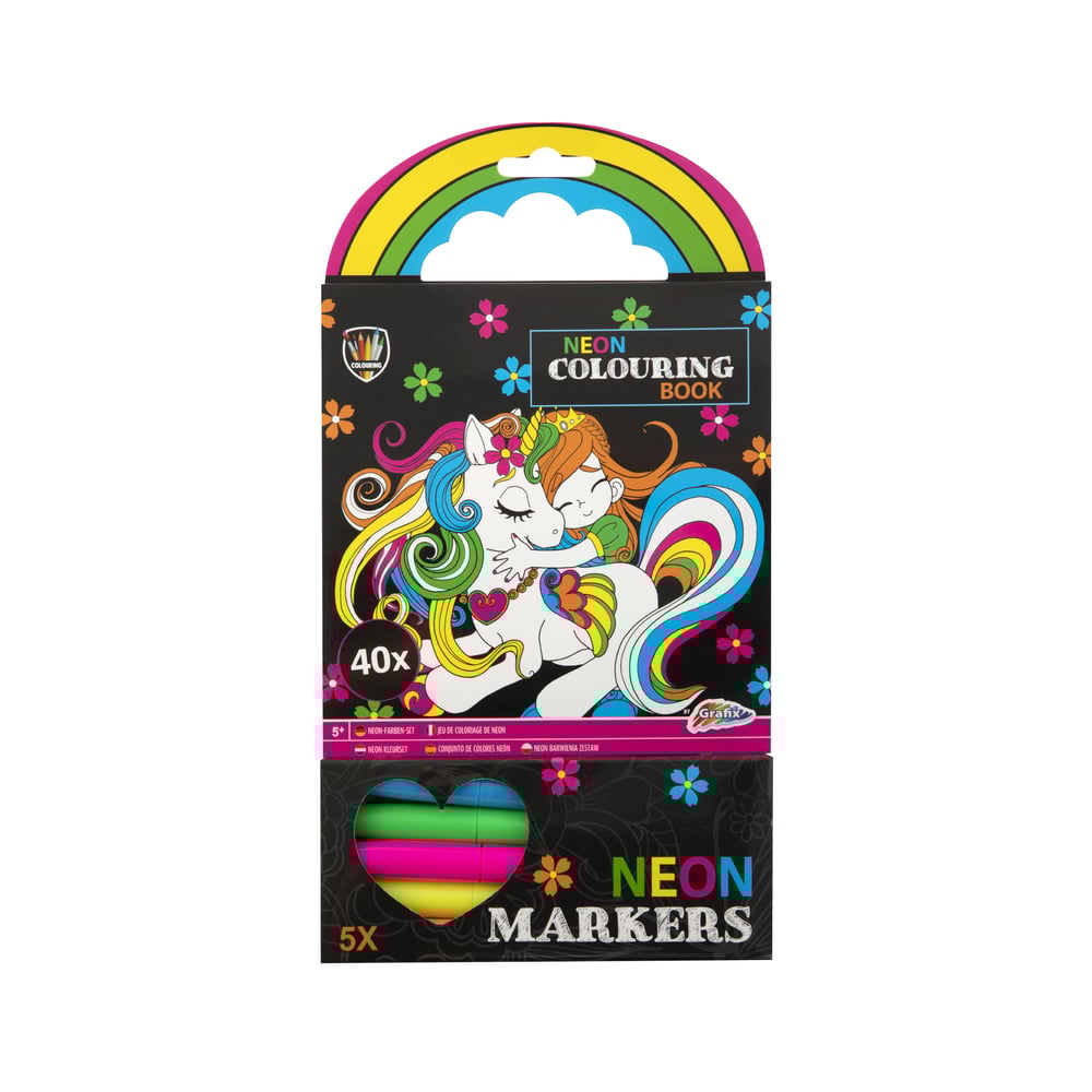 Moxy Книжка за оцветяване Еднорог, неон, с 5 маркера, 40 листа