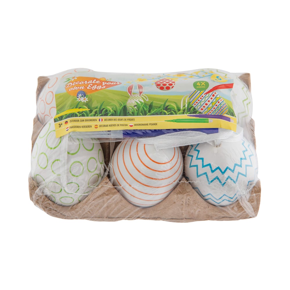 Moxy Яйца за декорация, бели, 6 броя, с включени мини флумастери