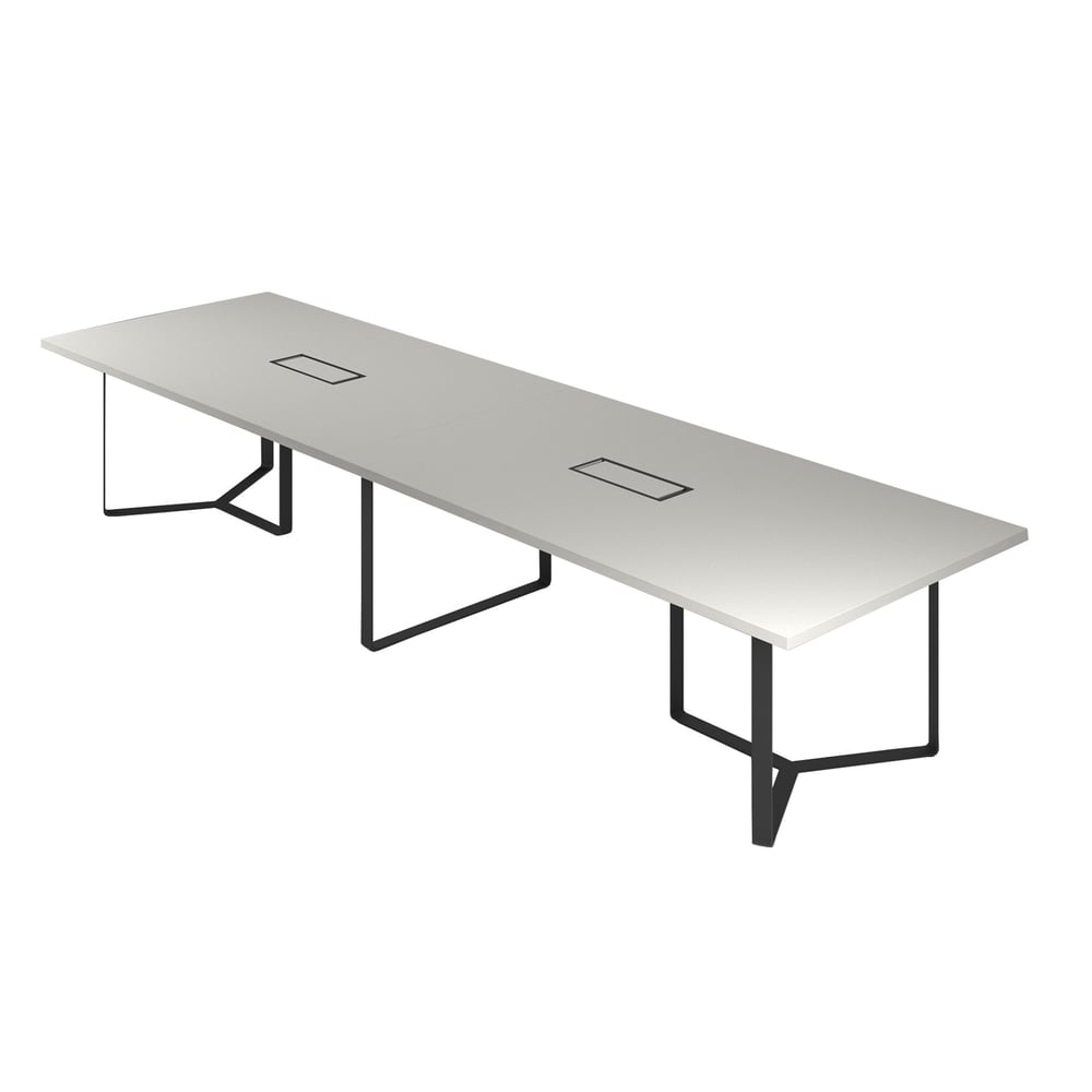 Заседателна маса Narbutas Plana, 2400 x 1200 x 750 mm, правоъгълен плот, ПДЧ 36 mm, перленосив меламин, бял метал, сив метал на кабелната кутия