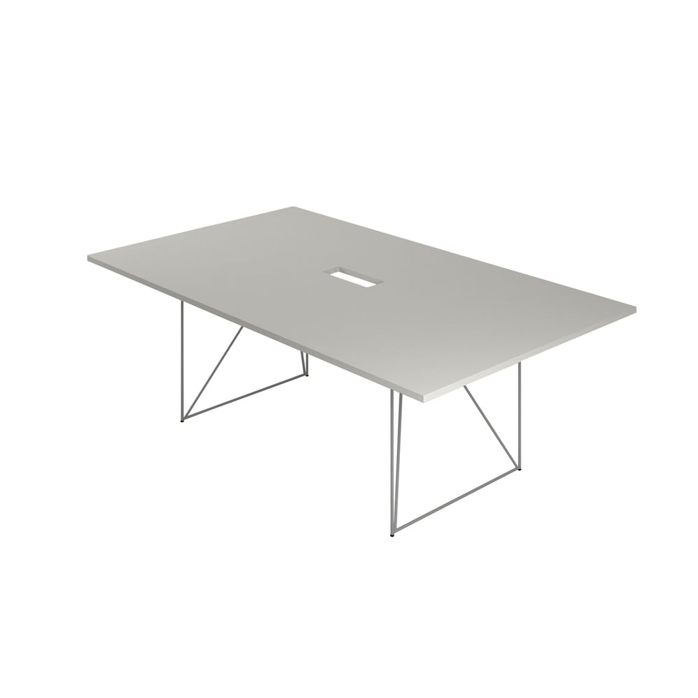Заседателна маса Narbutas Air, 2200 x 1300 x 740 mm, правоъгълен плот, ПДЧ 25 mm, перленосив меламин, сив метал