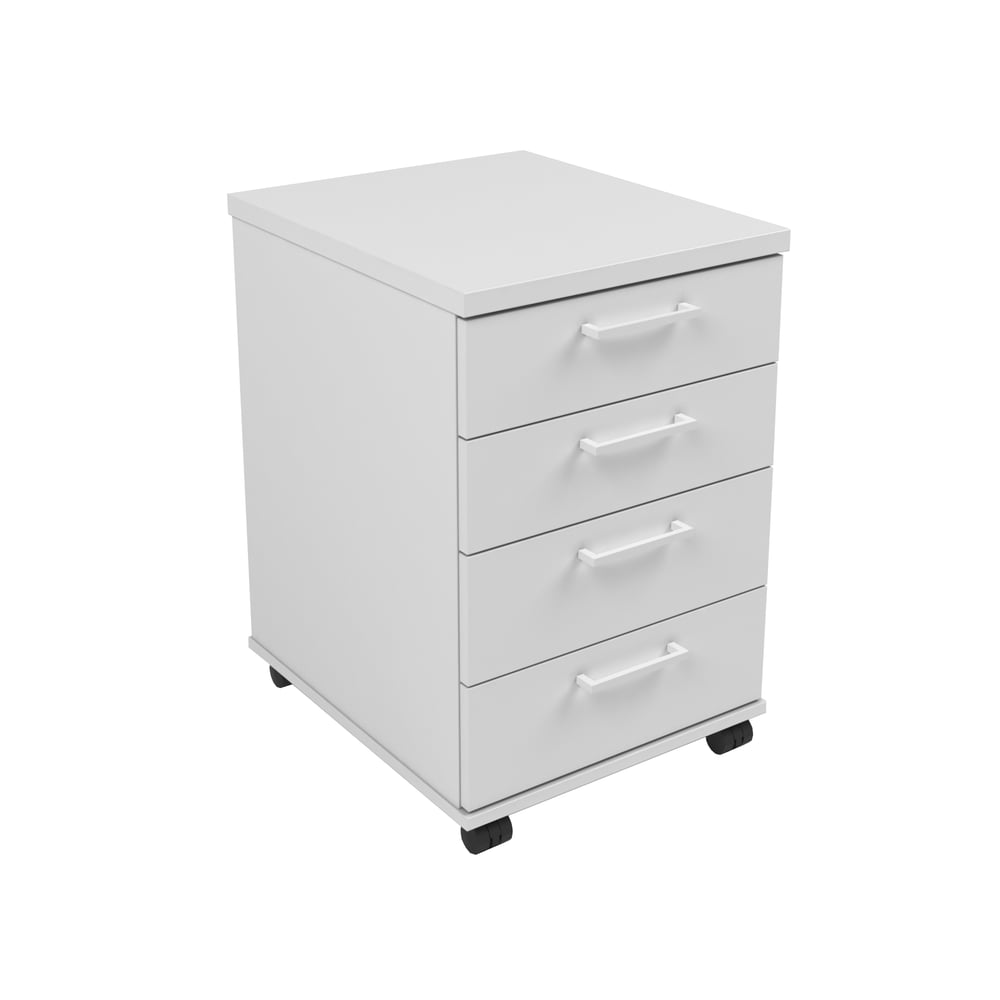 Контейнер за бюро Narbutas Optima, 415 x 500 x 638 mm, ПДЧ, бял меламин, бяла правоъгълна дръжка