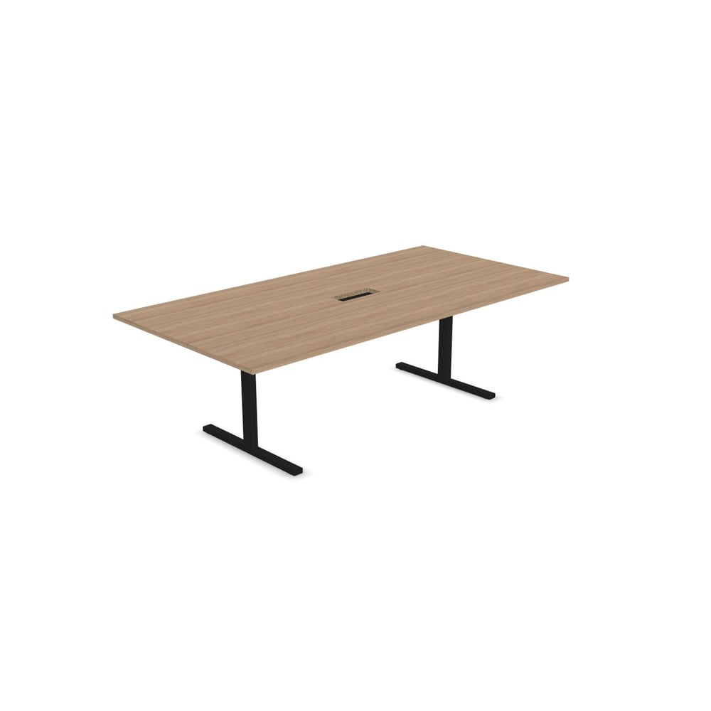 Заседателна маса Narbutas T-Easy, 2400 x 1200 x 740 mm, правоъгълен плот, ПДЧ 25 mm, меламин кехлибарен дъб, черен метал, крак тип I