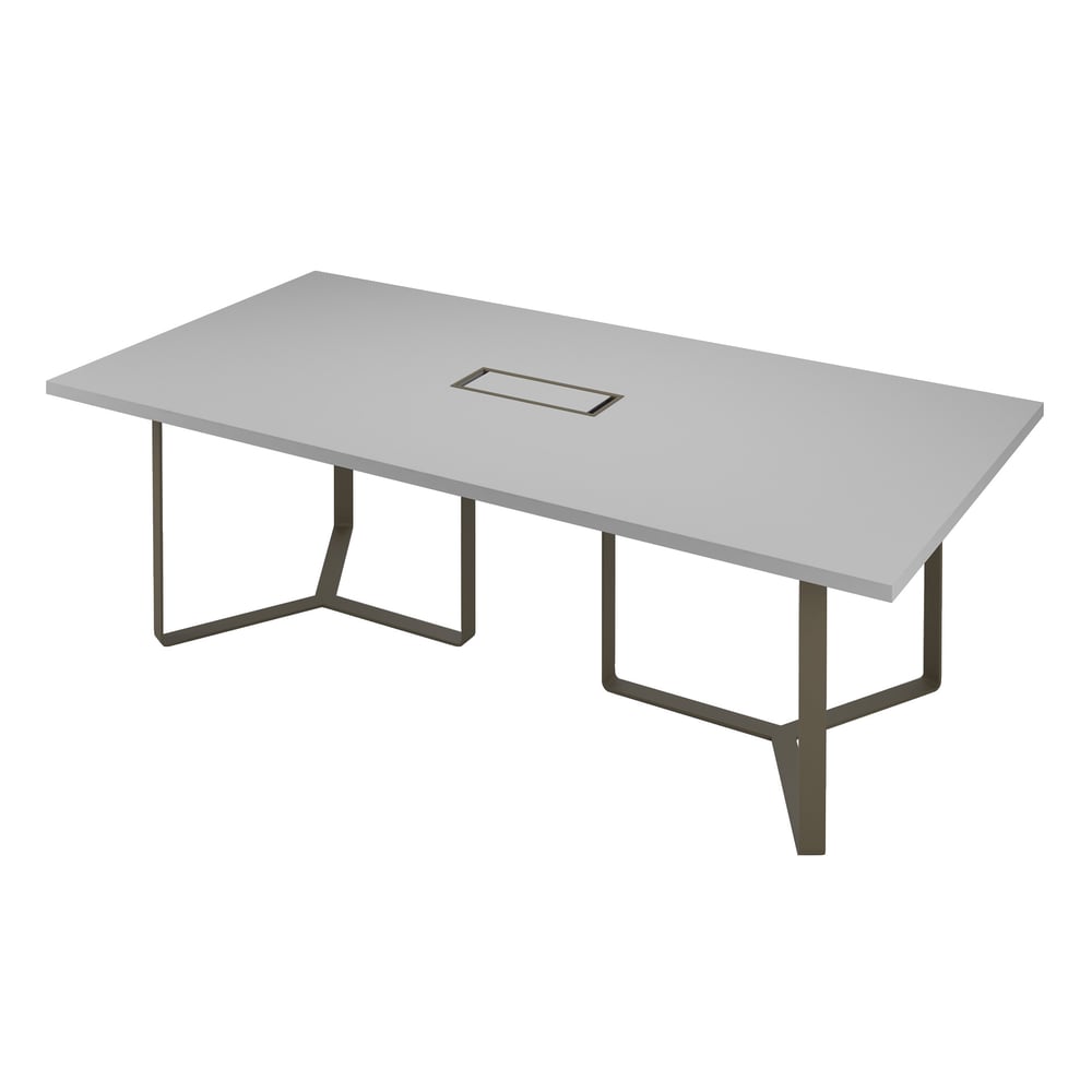 Заседателна маса Narbutas Plana, 2400 x 1200 x 750 mm, правоъгълен плот, ПДЧ 36 mm, тъмносив меламин, метал тъмен бронз, кабелна кутия тъмен бронз