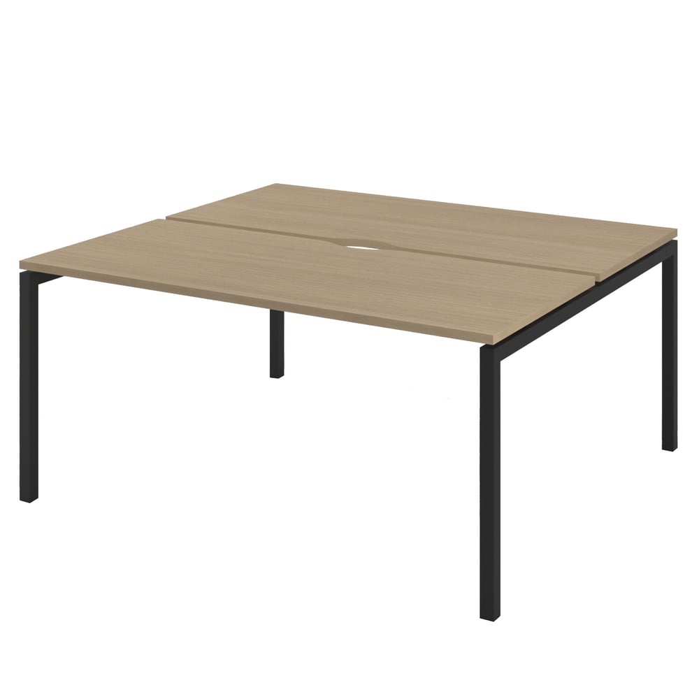 Бюра Narbutas Nova U Slide, работна двойка, 1600 x 1440 x 743 mm, меламин избелен дъб, черен метал, крак тип U
