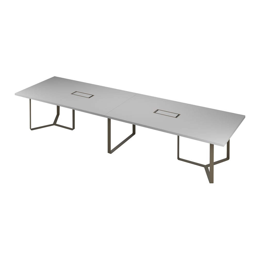 Заседателна маса Narbutas Plana, 2400 x 1200 x 750 mm, правоъгълен плот, ПДЧ 36 mm, перленосив меламин, бронзов метал, кабелната кутия бронз