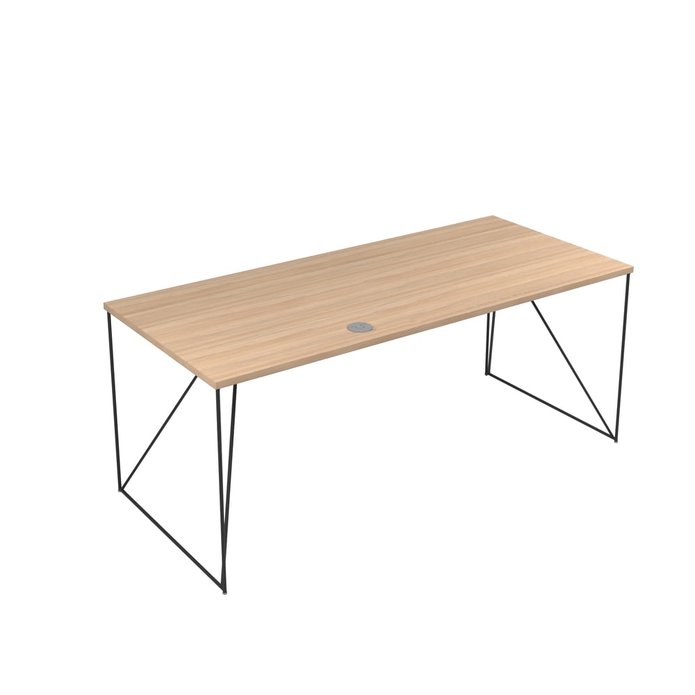 Заседателна маса Narbutas T-Easy, 2000 x 1200 x 740 mm, правоъгълен плот, ПДЧ 25 mm, меламин избелен дъб, черен метал, крак тип I