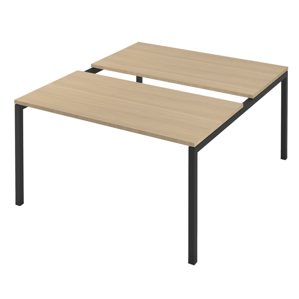 Бюра Narbutas Nova U Slide, работна двойка, 1400 x 1440 x 743 mm, меламин избелен дъб, черен метал, крак тип U