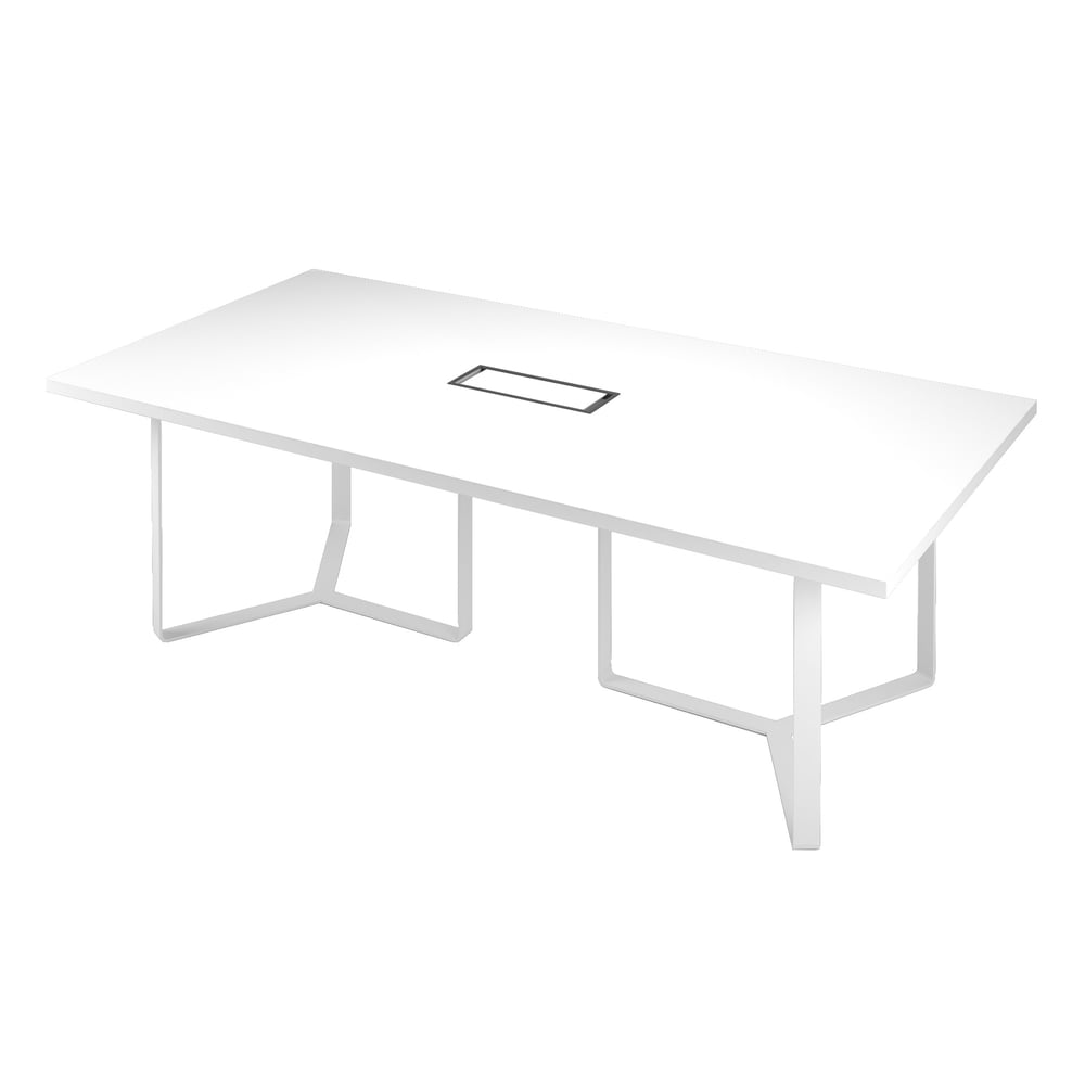 Заседателна маса Narbutas Plana, 2400 x 1200 x 750 mm, правоъгълен плот, ПДЧ 36 mm, бял меламин, бял метал, тъмносив метал на кабелната кутия