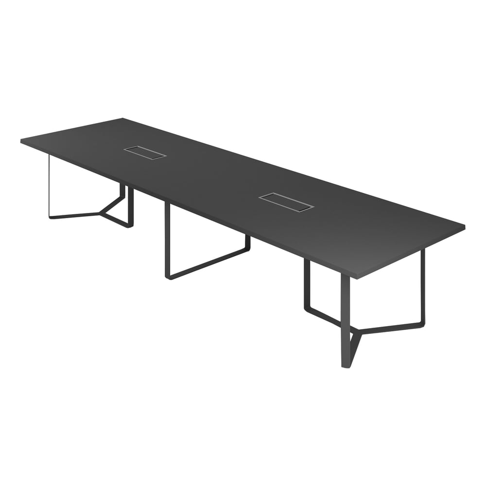 Заседателна маса Narbutas Plana, 2400 x 1200 x 750 mm, правоъгълен плот, ПДЧ 36 mm, тъмносив меламин, сив метал, тъмносив метал на кабелната кутия