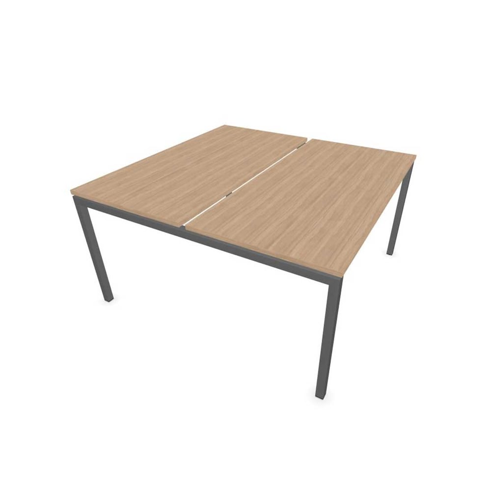 Бюра Narbutas Nova U, работна двойка, 1400 x 1440 x 743 mm, меламин кехлибарен дъб, тъмносив метал, крак тип U