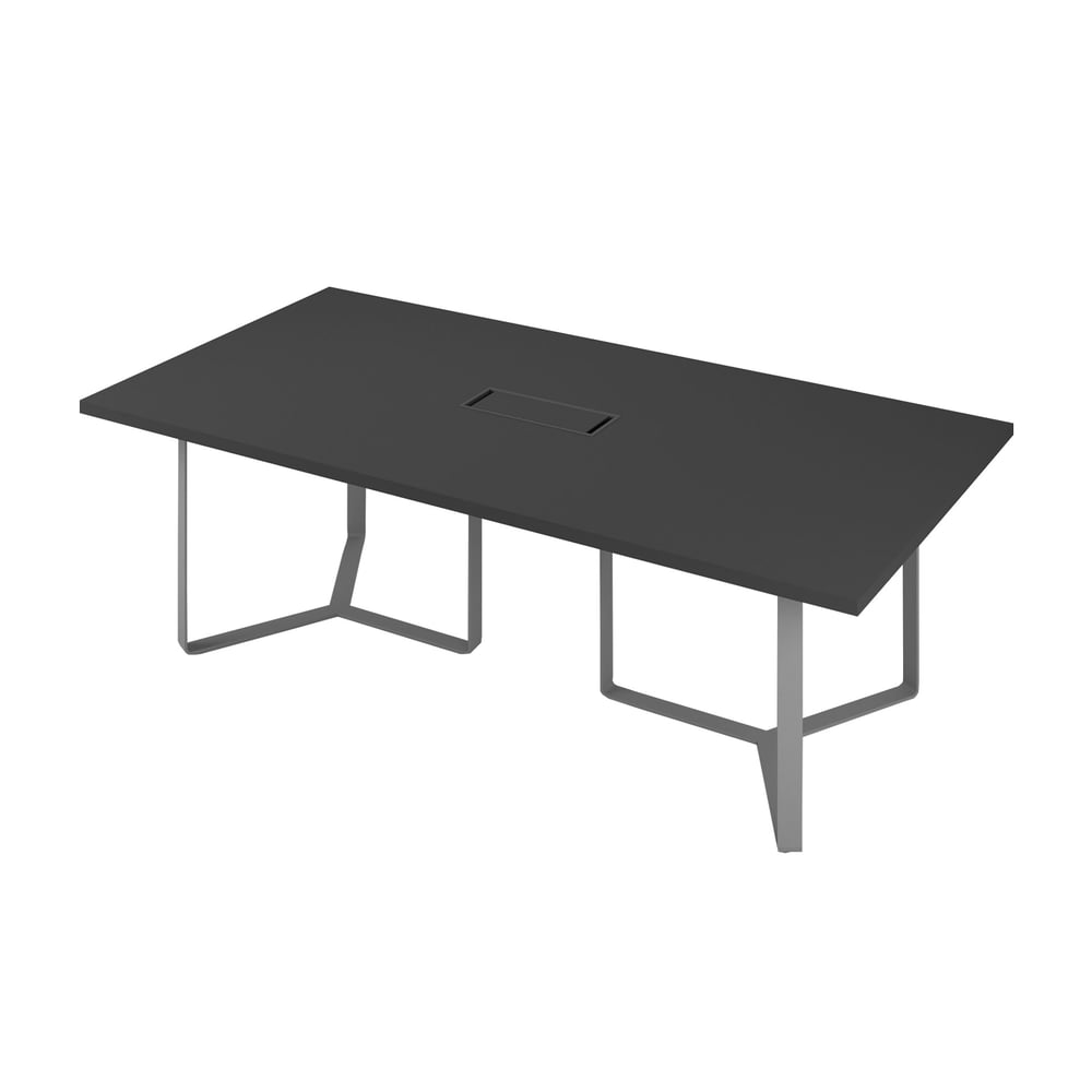 Заседателна маса Narbutas Plana, 2400 x 1200 x 750 mm, правоъгълен плот, ПДЧ 36 mm, тъмносив меламин, сив метал, тъмносив метал на кабелната кутия