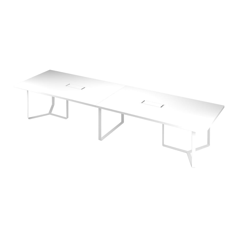 Заседателна маса Narbutas Plana, 4200 x 1200 x 750 mm, правоъгълен плот, ПДЧ 36 mm, бял меламин, бял метал, бял метал на кабелната кутия