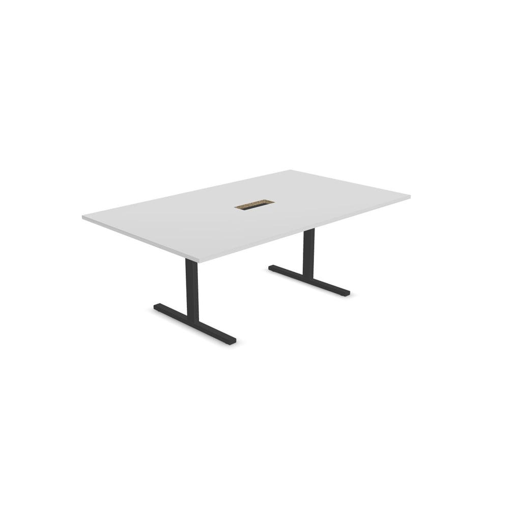 Заседателна маса Narbutas T-Easy, 2000 x 1200 x 740 mm, правоъгълен плот, ПДЧ 25 mm, бял меламин, тъмносив метал, крак тип I