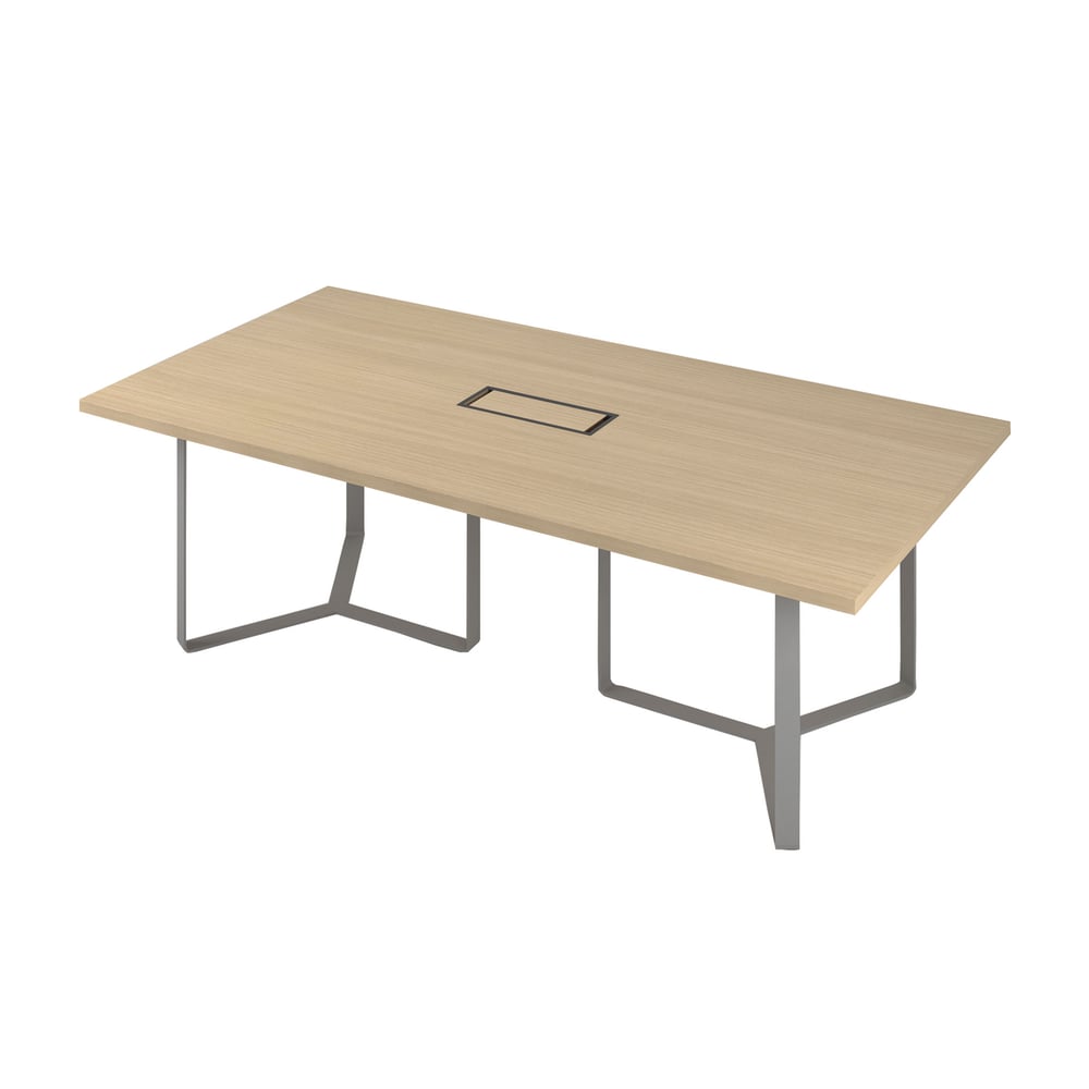 Заседателна маса Narbutas Plana, 2400 x 1200 x 750 mm, правоъгълен плот, ПДЧ 36 mm, меламин избелен дъб, сив метал, тъмносив метал на кабелната кутия