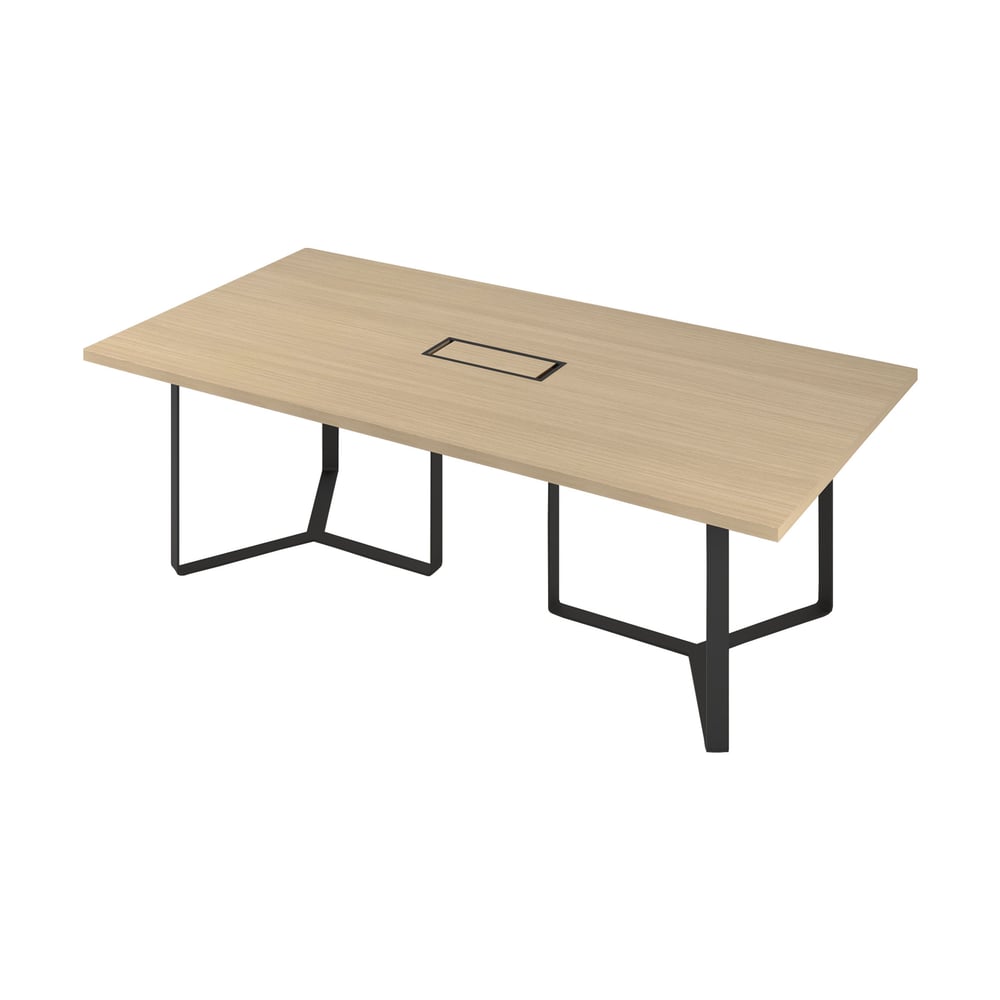 Заседателна маса Narbutas Plana, 2400 x 1200 x 750 mm, правоъгълен плот, ПДЧ 36 mm, меламин избелен дъб, черен метал, черен метал на кабелната кутия
