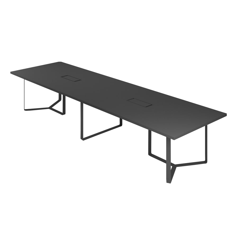 Заседателна маса Narbutas Plana, 4200 x 1200 x 750 mm, правоъгълен плот, ПДЧ 36 mm, тъмносив меламин, тъмносив метал, черен метал на кабелната кутия