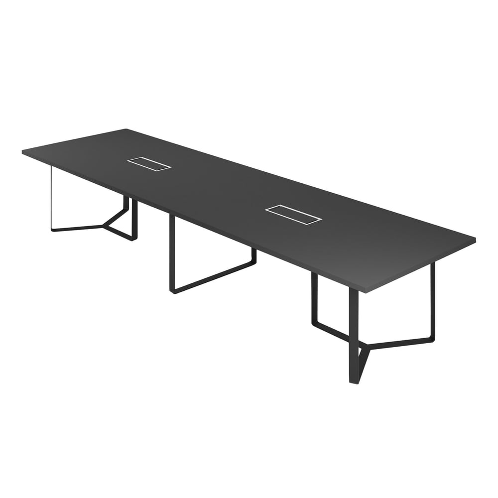 Заседателна маса Narbutas Plana, 4200 x 1200 x 750 mm, правоъгълен плот, ПДЧ 36 mm, тъмносив меламин, черен метал, бял метал на кабелната кутия