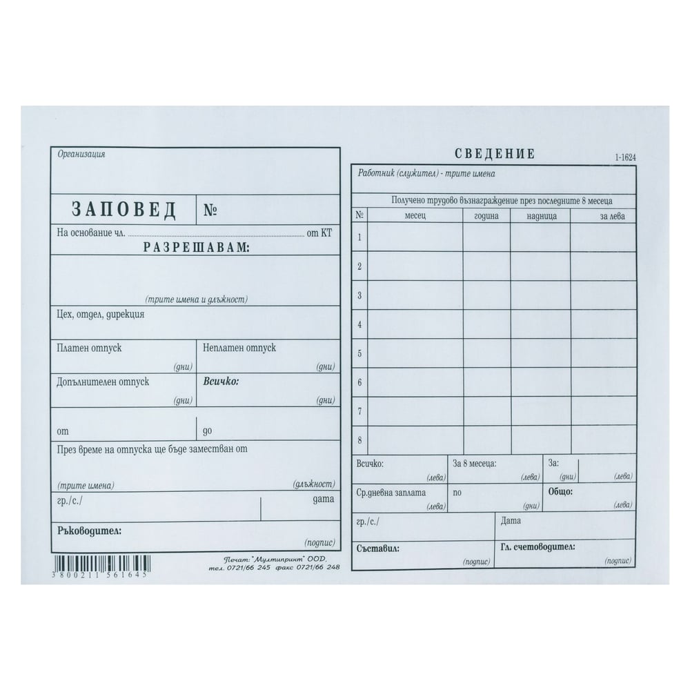 Книга за регистриране на актове за трудова злопулука, 100 листа