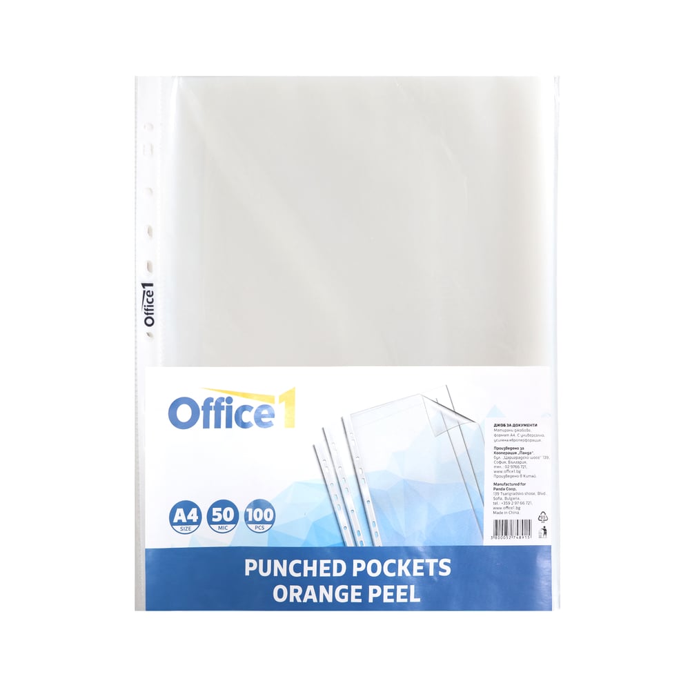 Office 1 Папка със син цип и джоб за визитка, А4, прозрачна