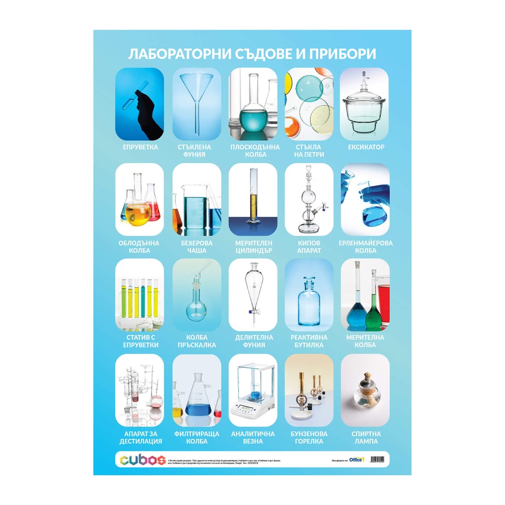 Office 1 Ученическо табло ''Лабораторни съдове и прибори'', ламинирано, 50 x 70 cm