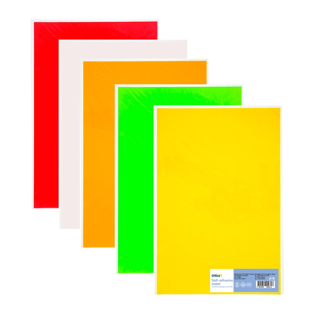 Office 1 Самозалепваща се хартия, 20 x 30 cm, 5 цвята, 10 листа