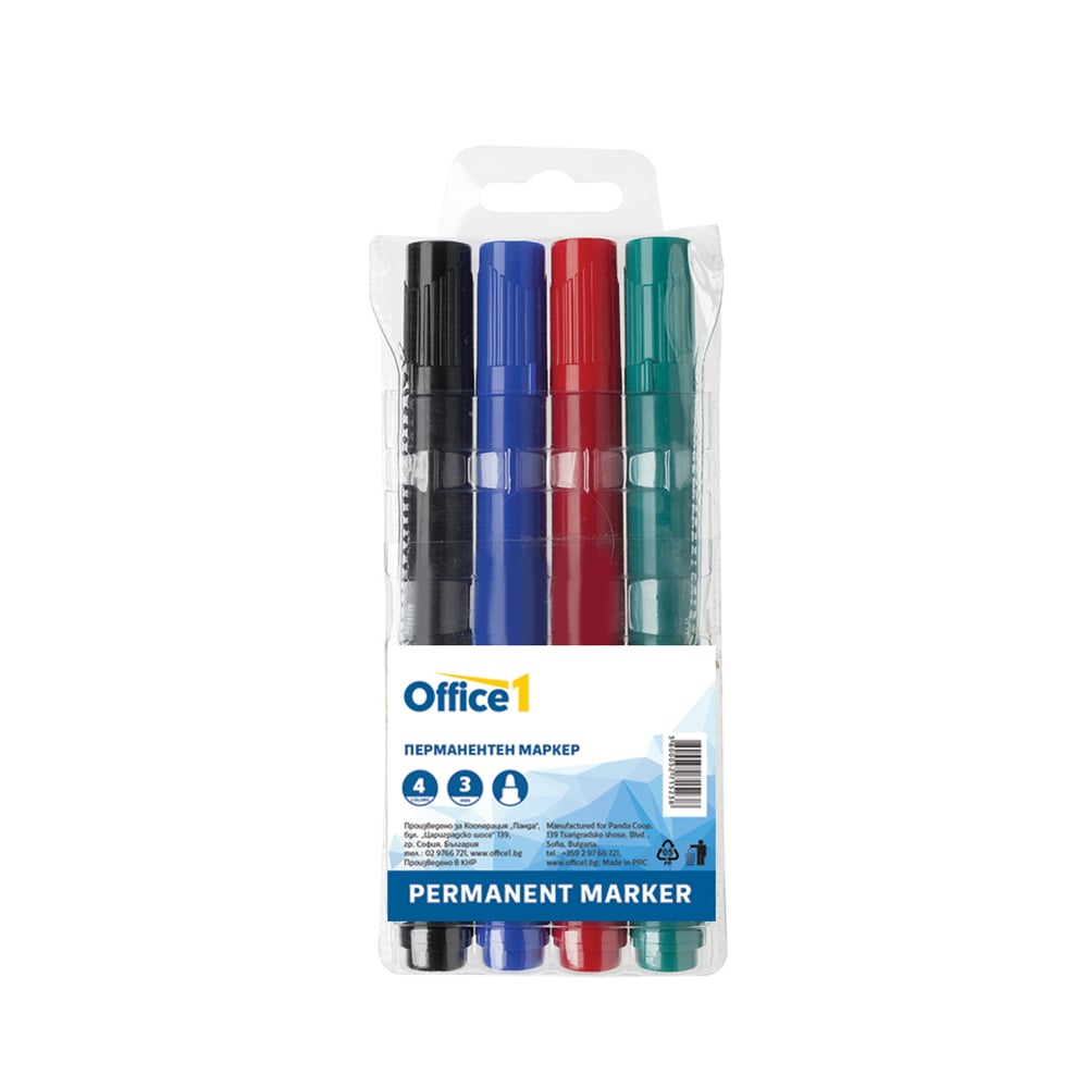 Office 1 Химикалка, 1.0 mm, прозрачен корпус, черна, 10 броя