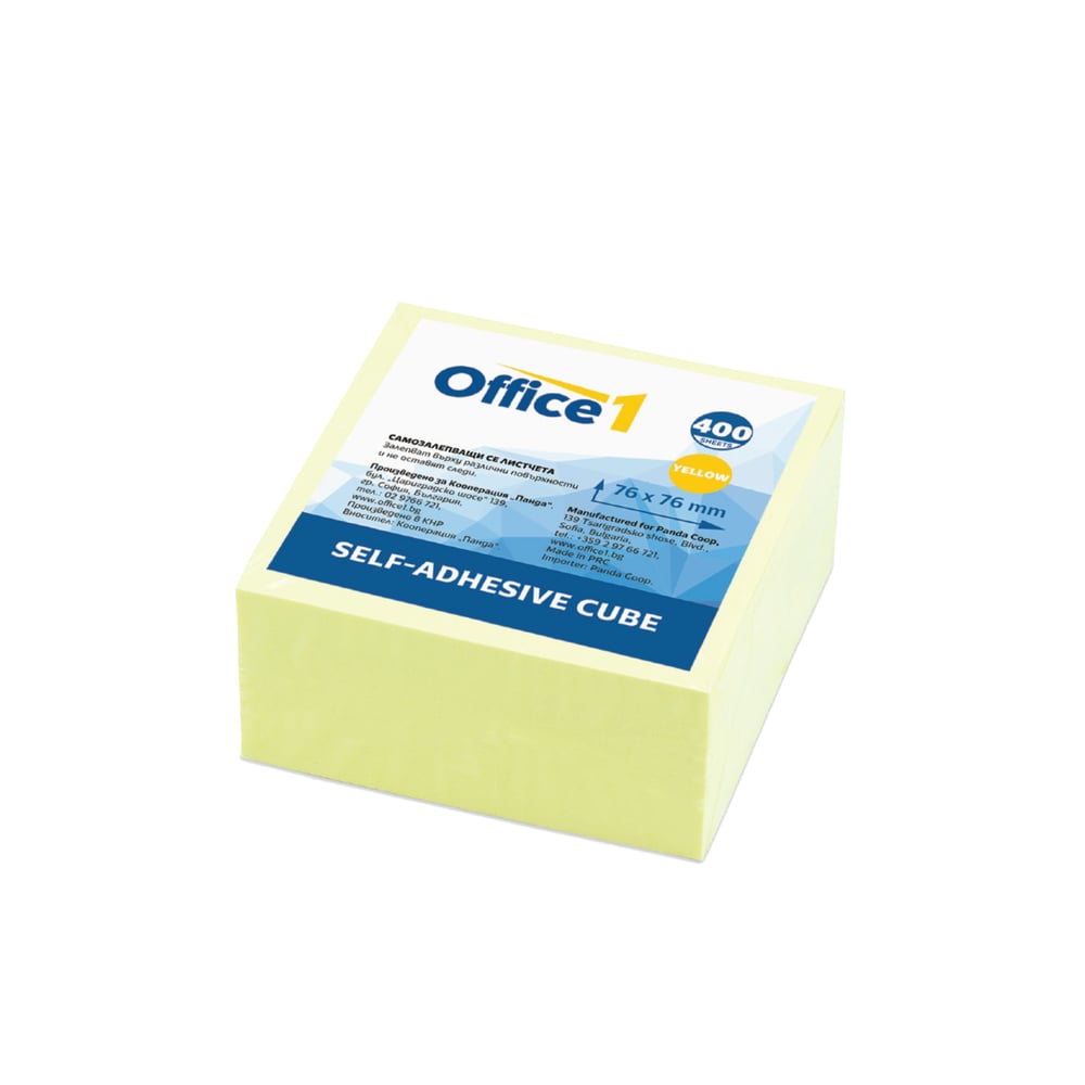 Office 1 Самозалепващи се листчета, 76 x 76 mm, пастелни, жълти, 400 листа