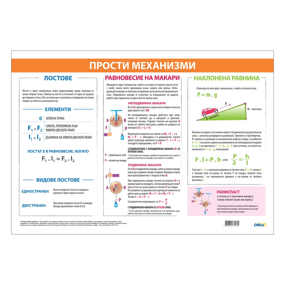 Office 1 Ученическо табло ''Прости механизми'', 100 x 70 cm