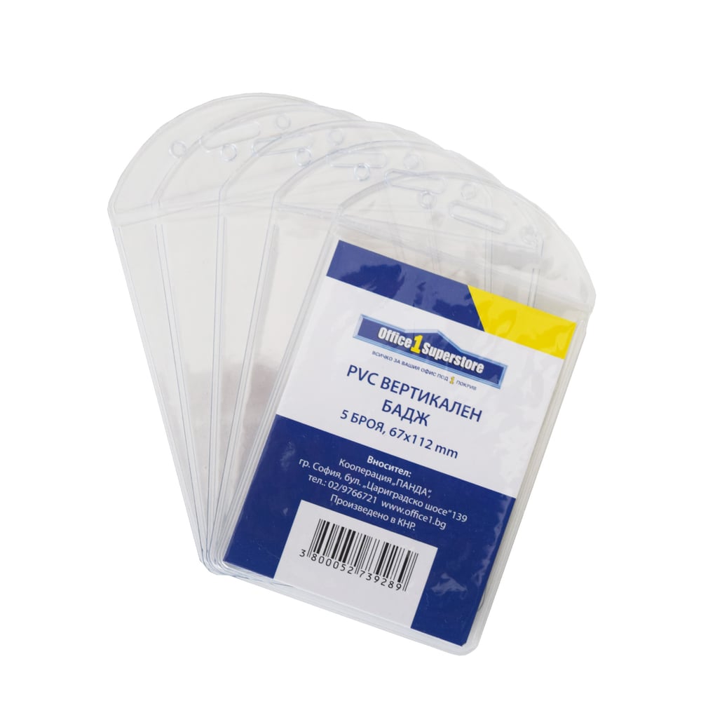 Office 1 Бадж, за изложения, PVC, вертикален, 115 х 165 mm, 50 броя