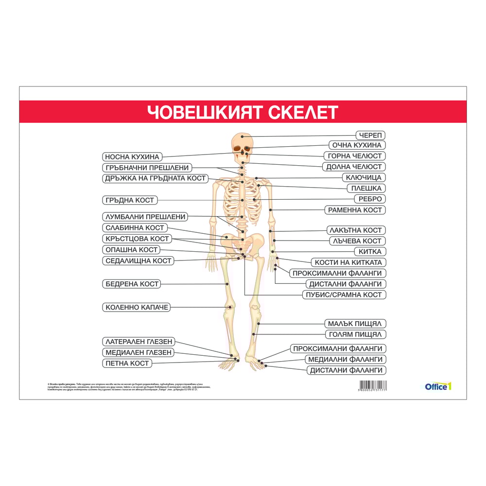Office 1 Ученическо табло ''Костна система'', 100 x 70 cm