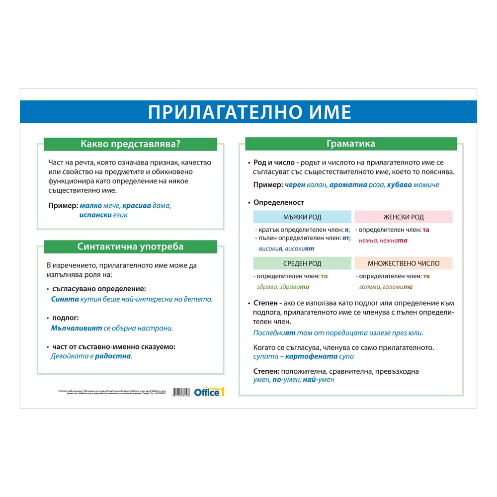 Office 1 Ученическо табло ''Прилагателни имена'', 100 x 70 cm