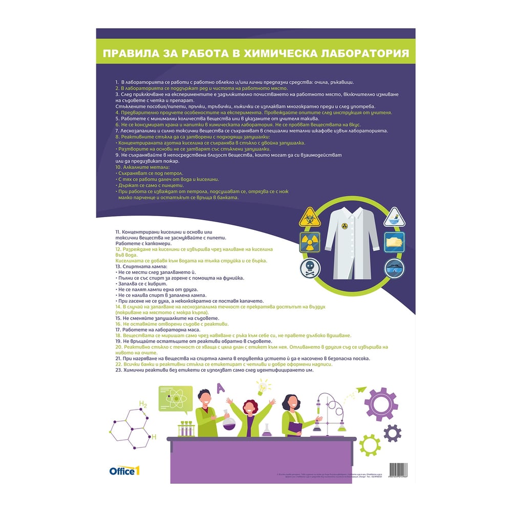 Office 1 Ученическо табло ''Правила за работа в химическа лаборатория'', 70 x 100 cm