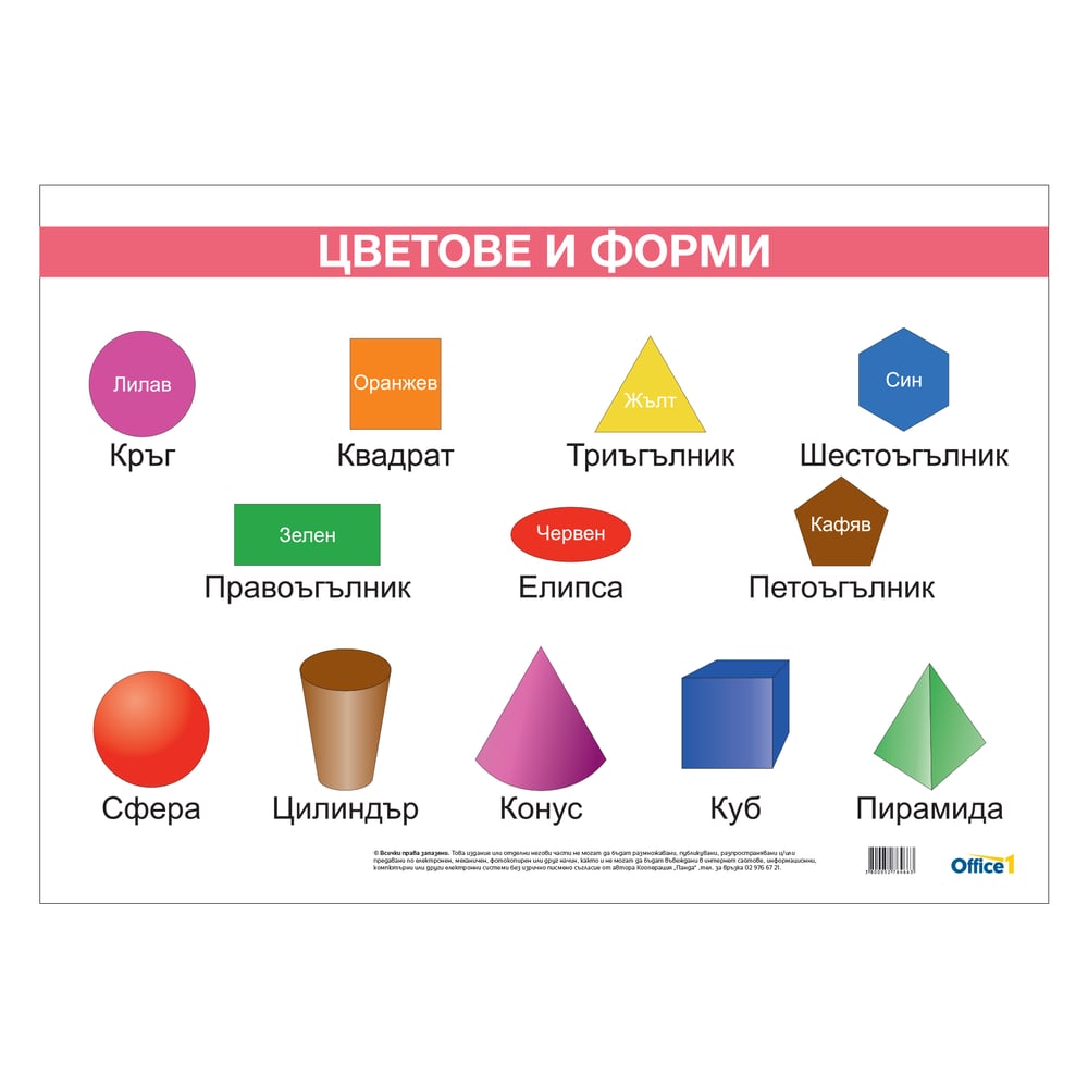 Office 1 Ученическо табло ''Форми и цветове'', ламинирано, 50 x 70 cm