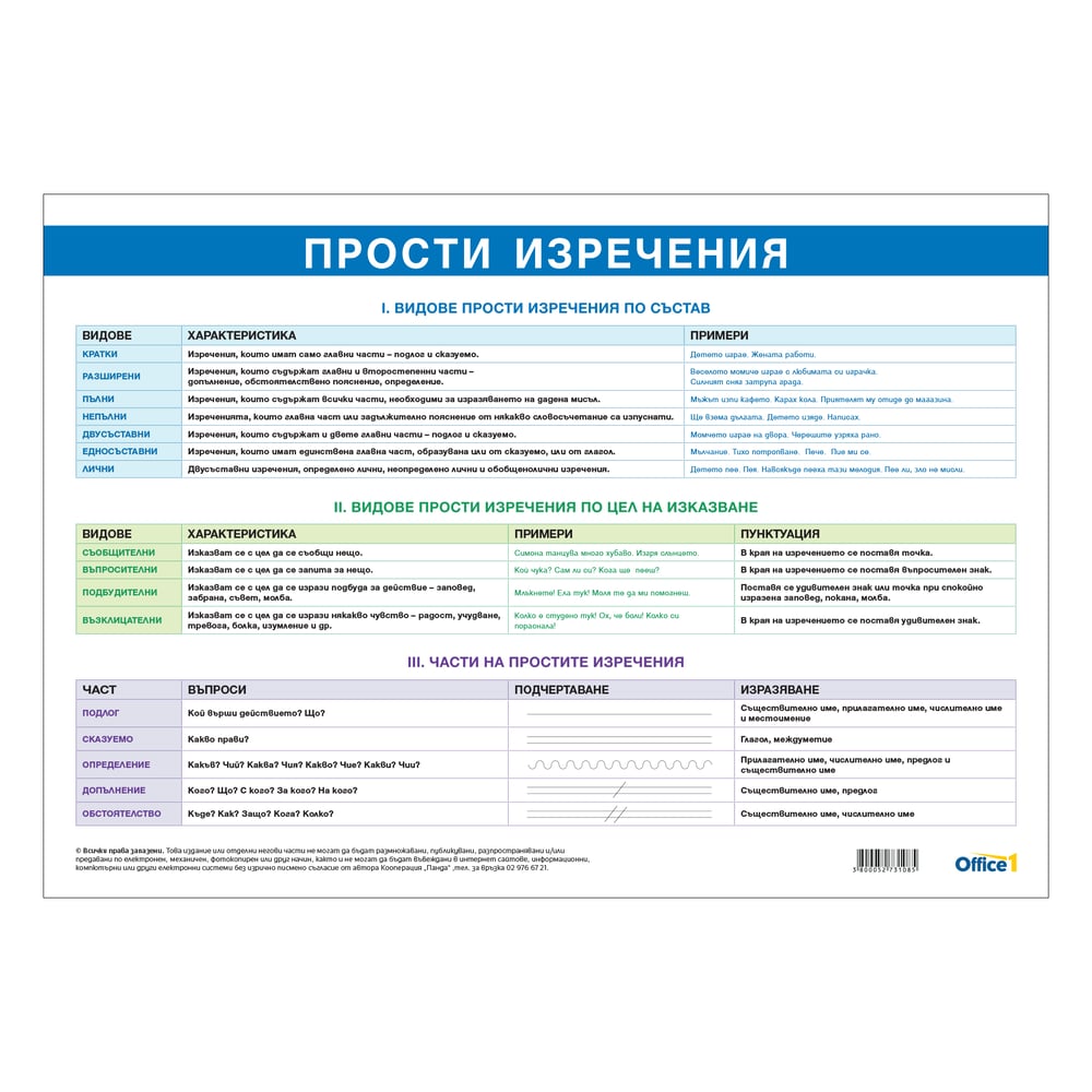 Office 1 Ученическо табло ''Пунктуация в сложно изречение'', 70 x 100 cm