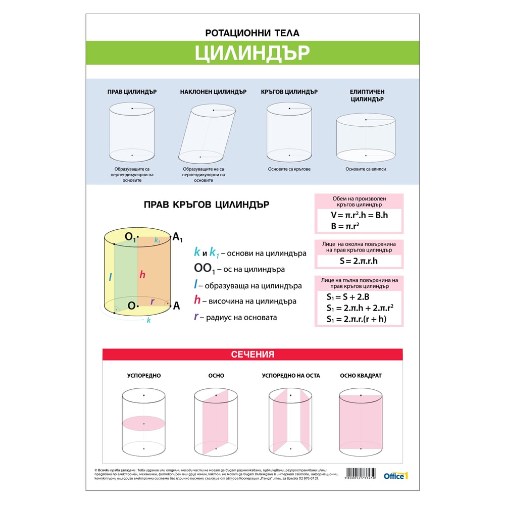 Office 1 Ученическо табло ''Ротационни тела цилиндър и конус'', 70 x 100 cm, двустранно