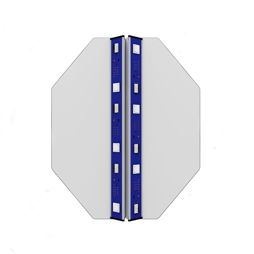 Лабораторна маса по физика RFG Hexa, над VII клас, 1700 х 1400 х 750 mm, HPL плот, синьо-бяла