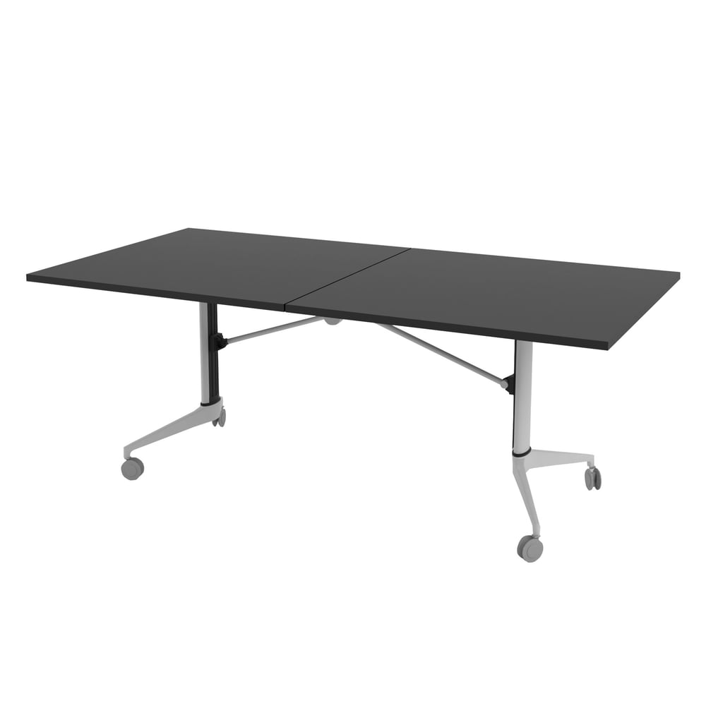 Конферентна маса RFG Butterfly, мобилна, сгъваема, 200 x 100 x 74 cm, правоъгълен плот, ПДЧ 18 mm, черна, бели метални крака