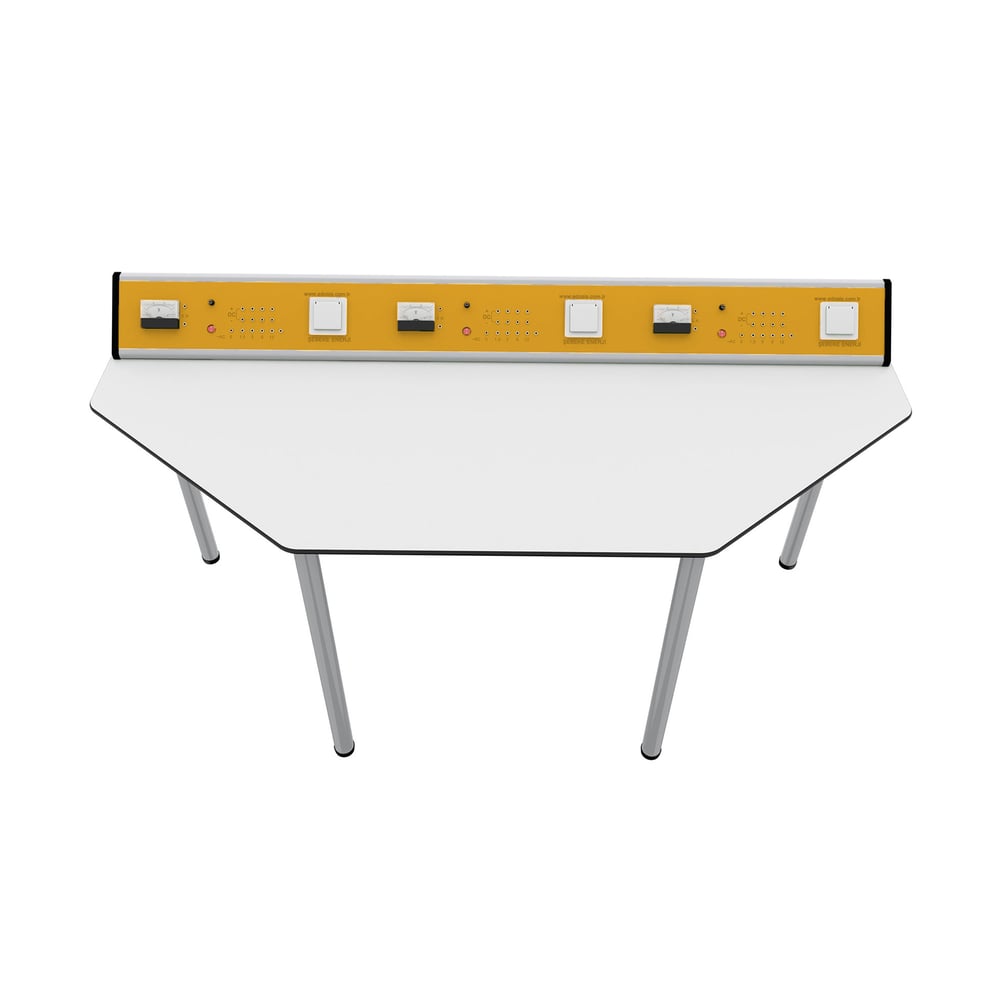 Лабораторна маса по физика RFG Quin, над VII клас, 1700 х 700 х 750 mm, HPL плот, жълто-бяла