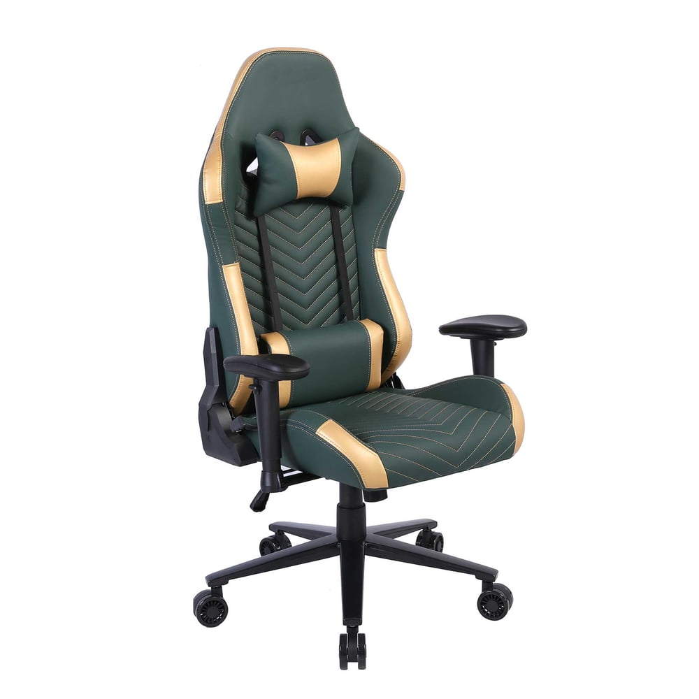 Геймърски стол RFG Nett, екокожа, полиамидна основа, до 130 kg, тъмнозелено-златист