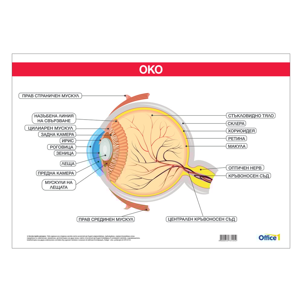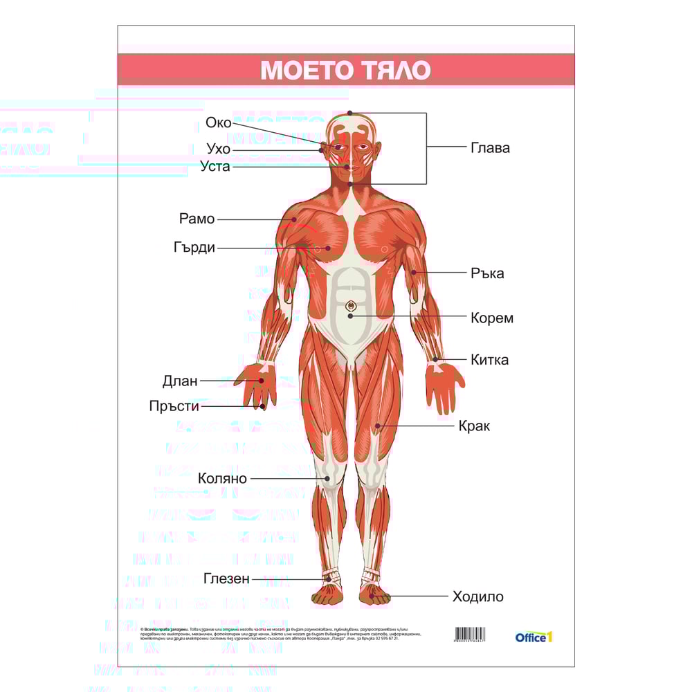 Office 1 Ученическо табло ''Моето тяло'', ламинирано, 50 x 70 cm