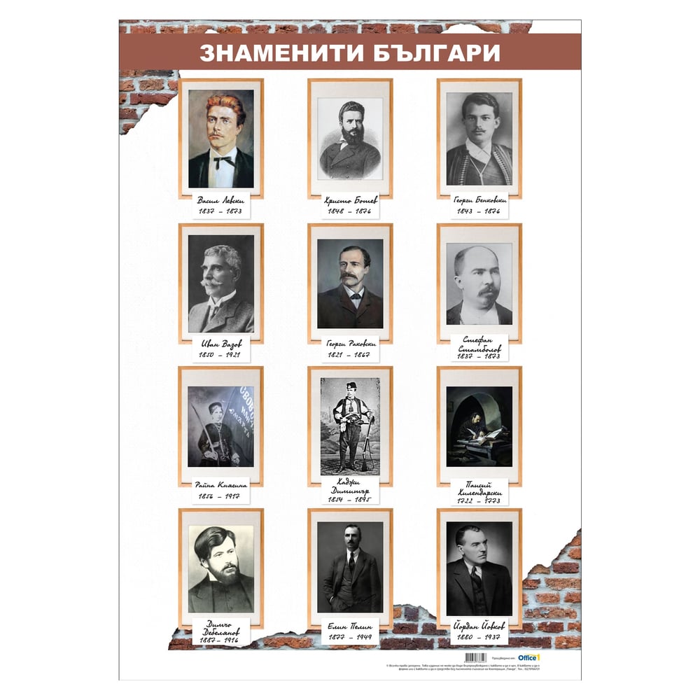 Office 1 Ученическо табло ''Известни български личности'', 70 x 100 cm