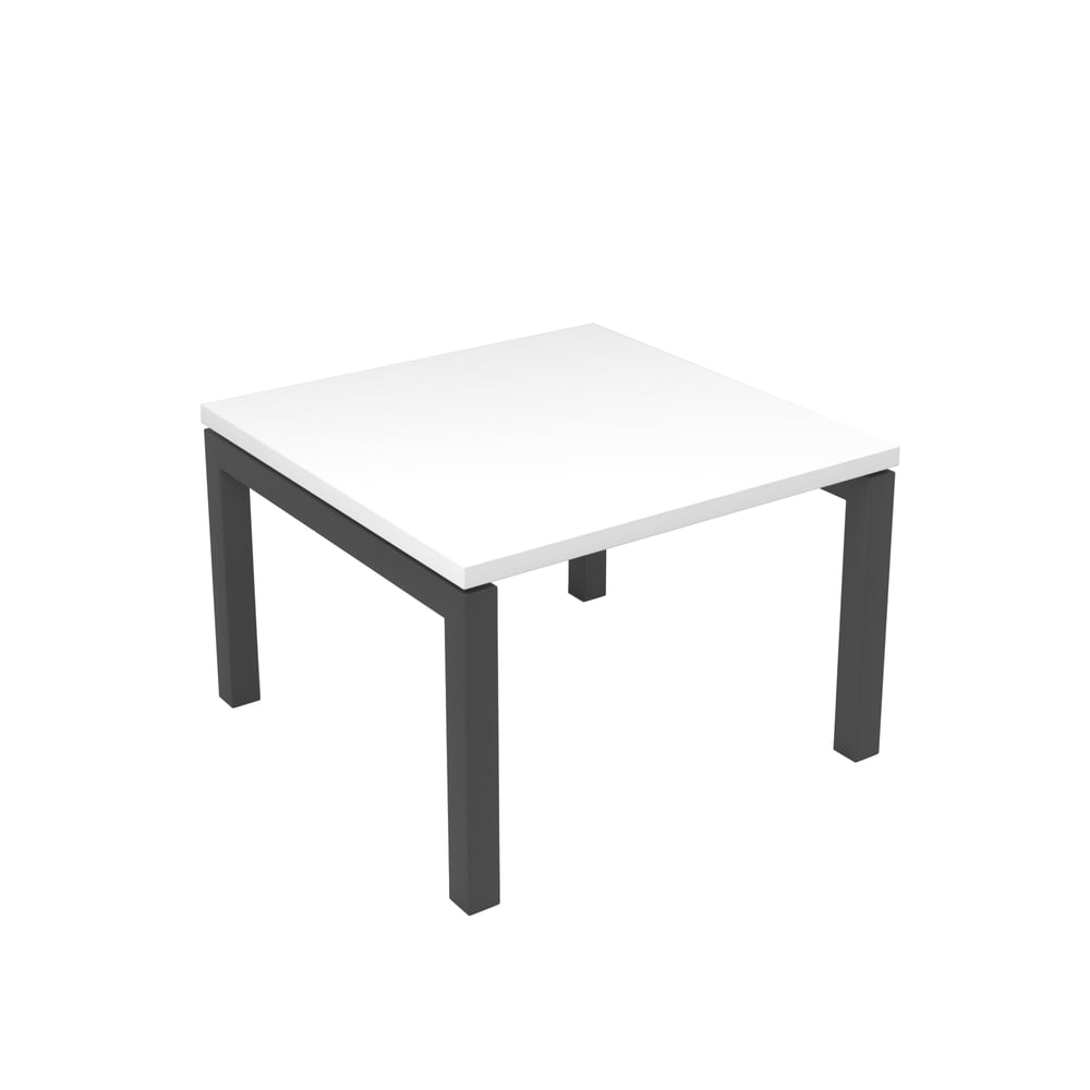 Ниска маса Narbutas Nova, 600 x 600 x 400 mm, квадратен плот, ПДЧ, бял меламин, тъмносив метал, крак тип U