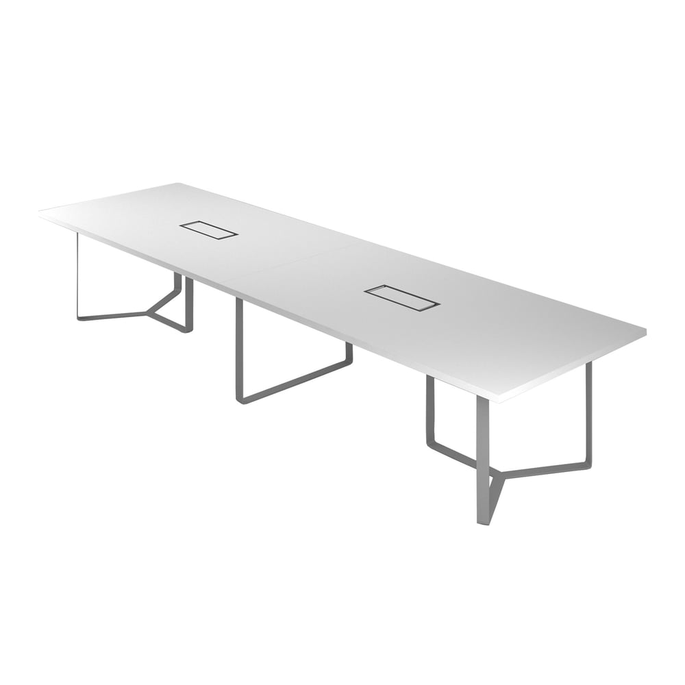 Заседателна маса Narbutas Plana, 2400 x 1200 x 750 mm, правоъгълен плот, ПДЧ 36 mm, бял меламин, бял метал, бял метал на кабелната кутия