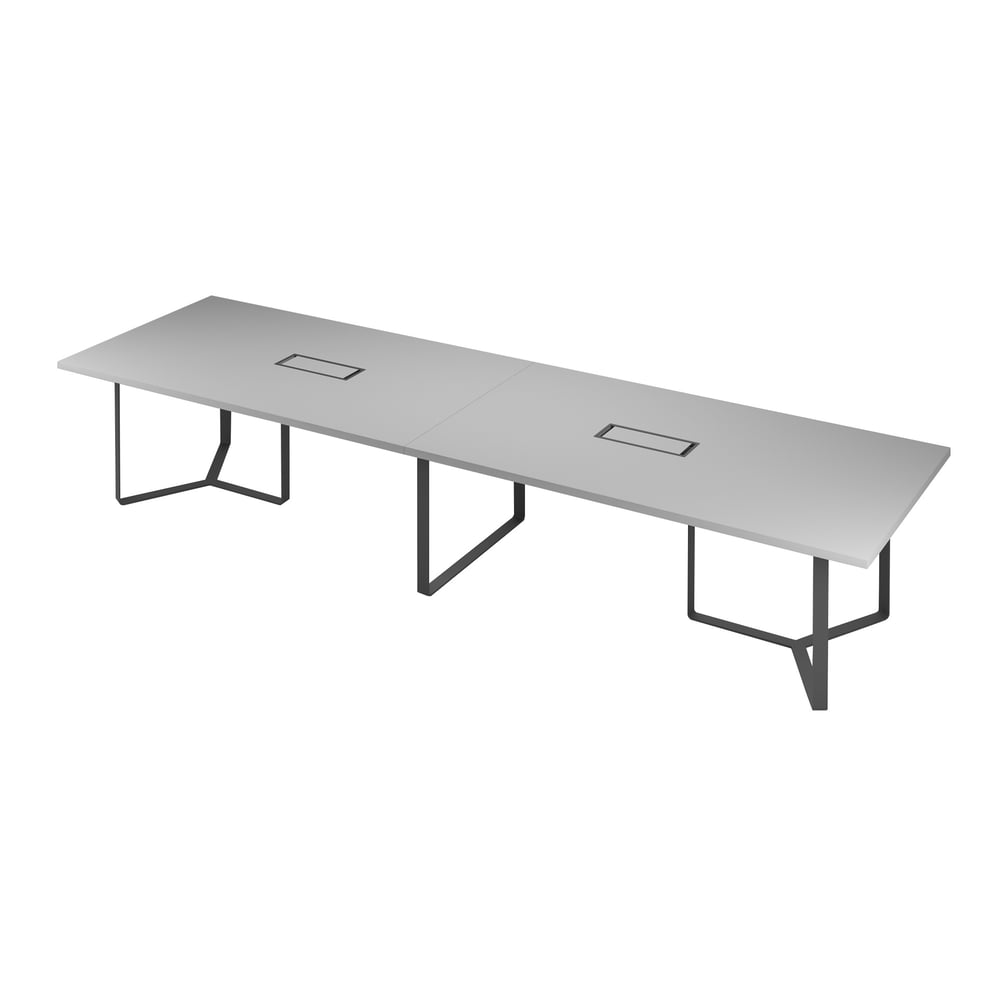 Заседателна маса Narbutas Plana, 4200 x 1200 x 750 mm, правоъгълен плот, ПДЧ 36 mm, перленосив меламин, тъмносив метал, черен метал на кабелната кутия